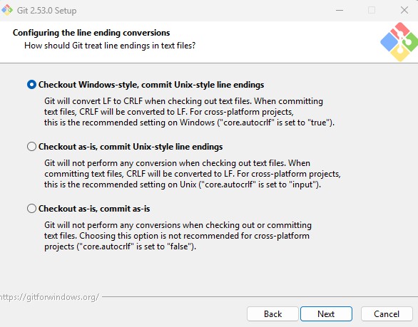 This step determines how Git handles line endings,