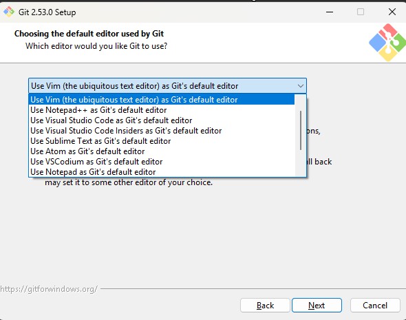 the editor Git will use for commit messages.